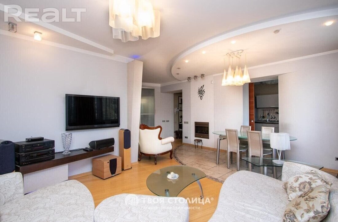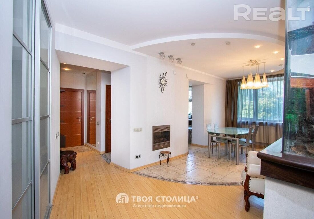 В совминовском доме на Золотой Горке на продажу выставили большую квартиру, в которой остановилось время. Но не в БССР, а в богатых 2000-х. Здесь и аквариум, и стеклянные столы, и фигурные потолки, и DVD-проигрыватель. При этом, все выглядит хорошо и сегодня. Рассказываем историю этого дома и показываем квартиру в деталях.