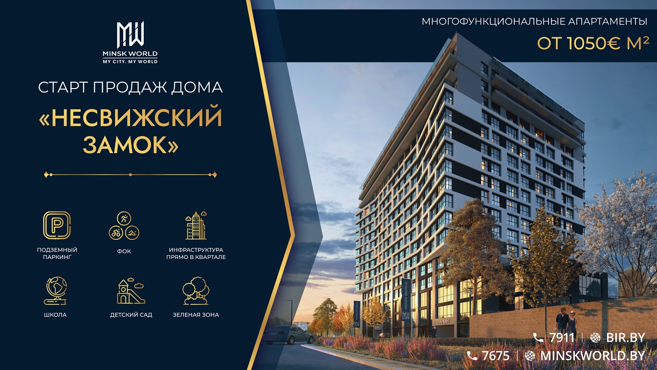 Многофункциональный комплекс Minsk World представляет новый квартал «Родная страна», где будут построены 2 дома с многофункциональными апартаментами. В доме «Несвижский замок» будет создано всё для счастливой жизни и успешного бизнеса. Его строительство уже началось! И лучшие цены именно на старте продаж — от 1050 евро за м2*!