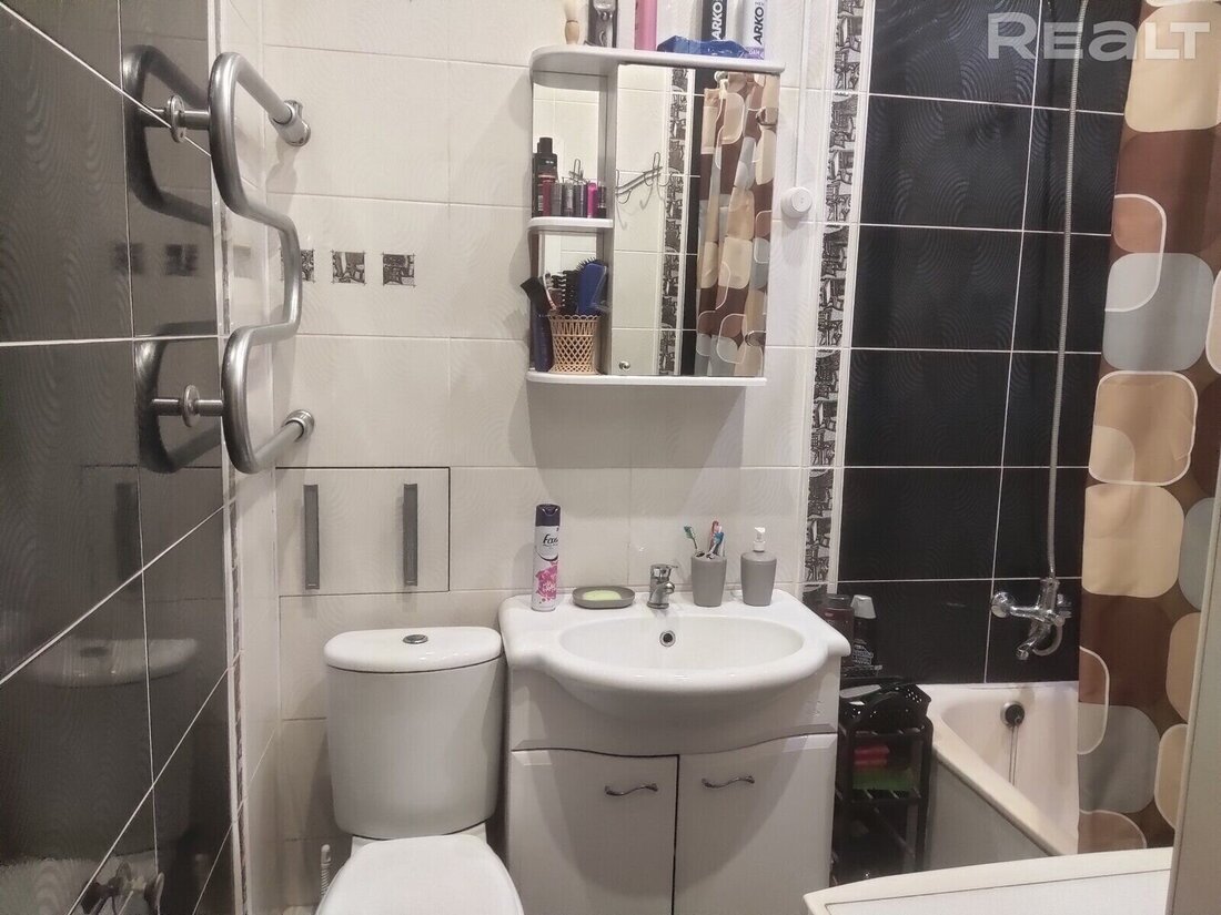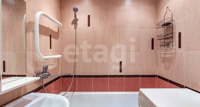 Санузел совмещенный. Установлена ванна, есть стиральная машина.