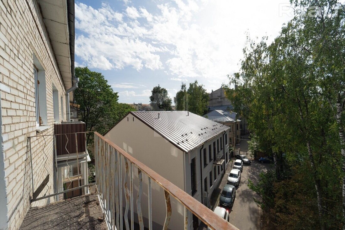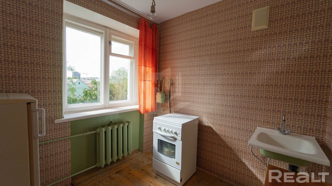 Однушка в десяти минутах ходьбы от «Немиги» и «Купаловской» станций метро. Кирпичная пятиэтажка 1961 года, пятый этаж.