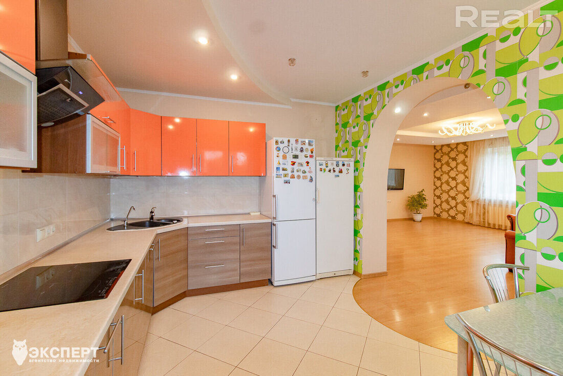 В квартире сделан добротный ремонт: полы − ламинат, пробка и импортная плитка. Стены и потолки выровнены. В санузле и ванной − импортная плитка и сантехника. Встроенная кухня оборудована духовым шкафом, варочной поверхностью и вытяжкой.