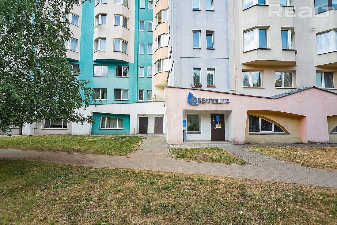 Расположение у дома — весьма неплохое. В пешей доступности от многоэтажки находятся: усадьба Ваньковичей, водно-парковая зона, Национальная библиотека, Дана Молл и станция метро «Восток». За 10 минут при желании можно дойти до Парка Челюскинцев и до проспекта Независимости.