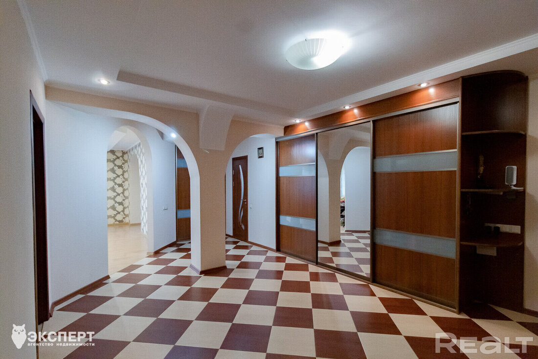 В коридоре есть большой встроенный шкаф и гардеробная. Окна выходят в тихий благоустроенный двор с большим количеством зелени.