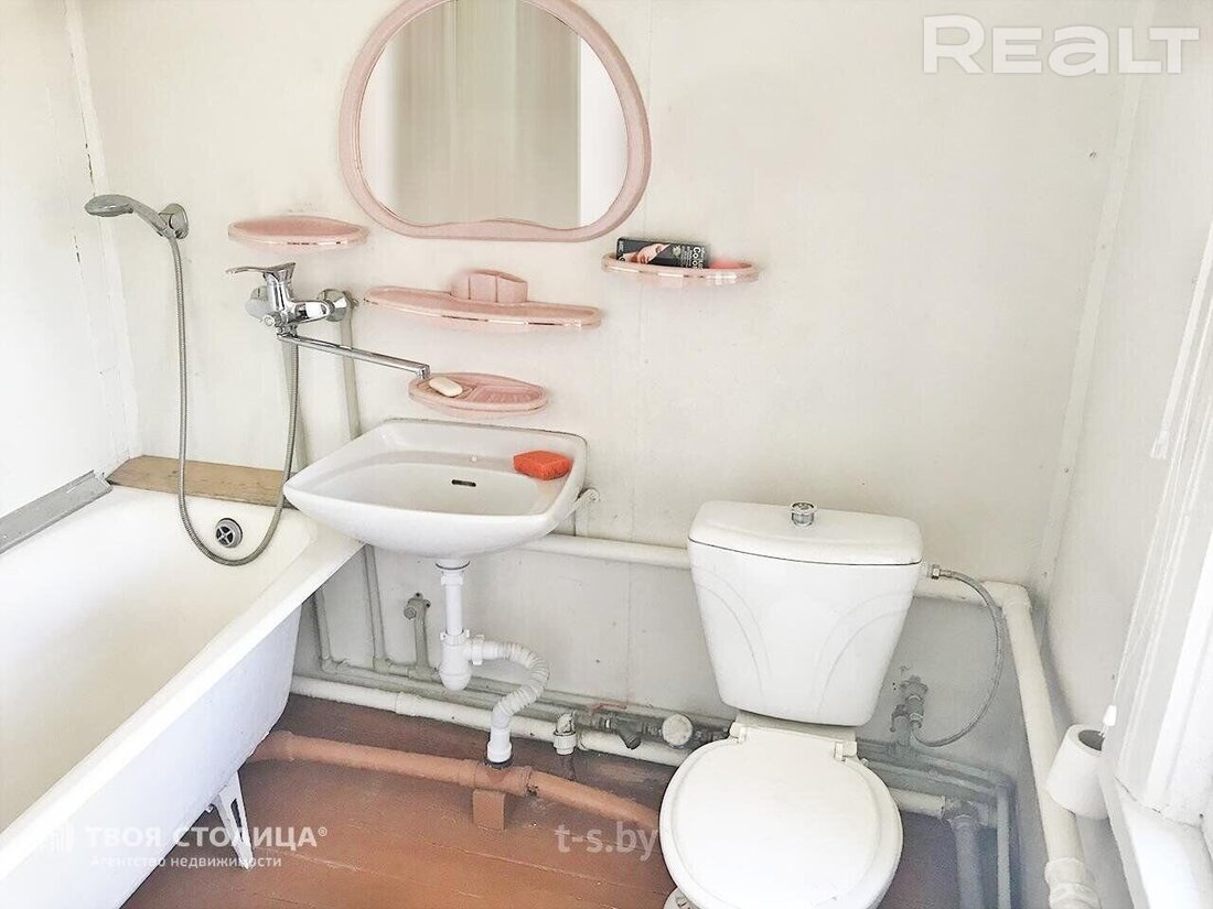 Под совмещенный санузел отвели комнату на 4 квадрата с окном — в ней поместилась ванна, умывальник и унитаз. Газ, водопровод и канализация центральные.