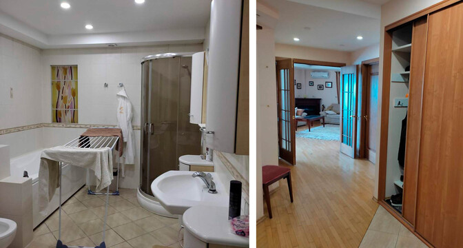 Общая площадь квартиры, которую продают за долги, — 125 квадратов. В ней четыре комнаты. На фото, вероятно, поали не все комнаты. Видна кухня, гостиная, спальня и очень просторный санузел. Вот как все выглядит.