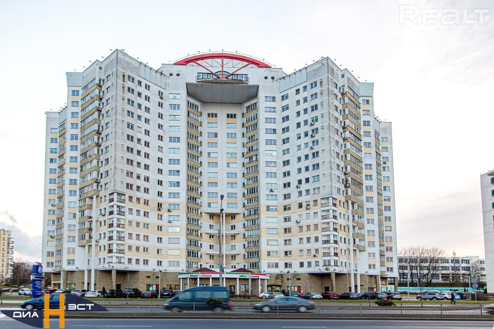 Адрес дома — проспект Победителей, 57. Он находится напротив парка Победы и Комсомольского озера. В доме 18 этажей, его построили в 2004 году. Этот дом можно назвать элиткой 2000-х: квартиры здесь большие и недешевые. В продаже и аренде в базе Realt сейчас есть варианты от трех до пяти комнат. Самая дешевая трешка продается за 195 тысяч долларов, а самая дорогая — за 450 тысяч.