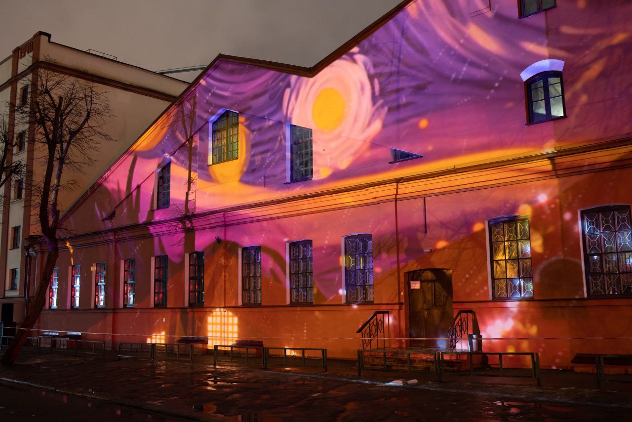 С помощью технологий 3D-мэппинга показали изображения, которые напомнили о великих произведениях, в том числе и белорусских художников: Марка Шагала, Язепа Дроздовича, Ван Гога, Сальвадора Дали, Густава Климта, Энди Уорхола.