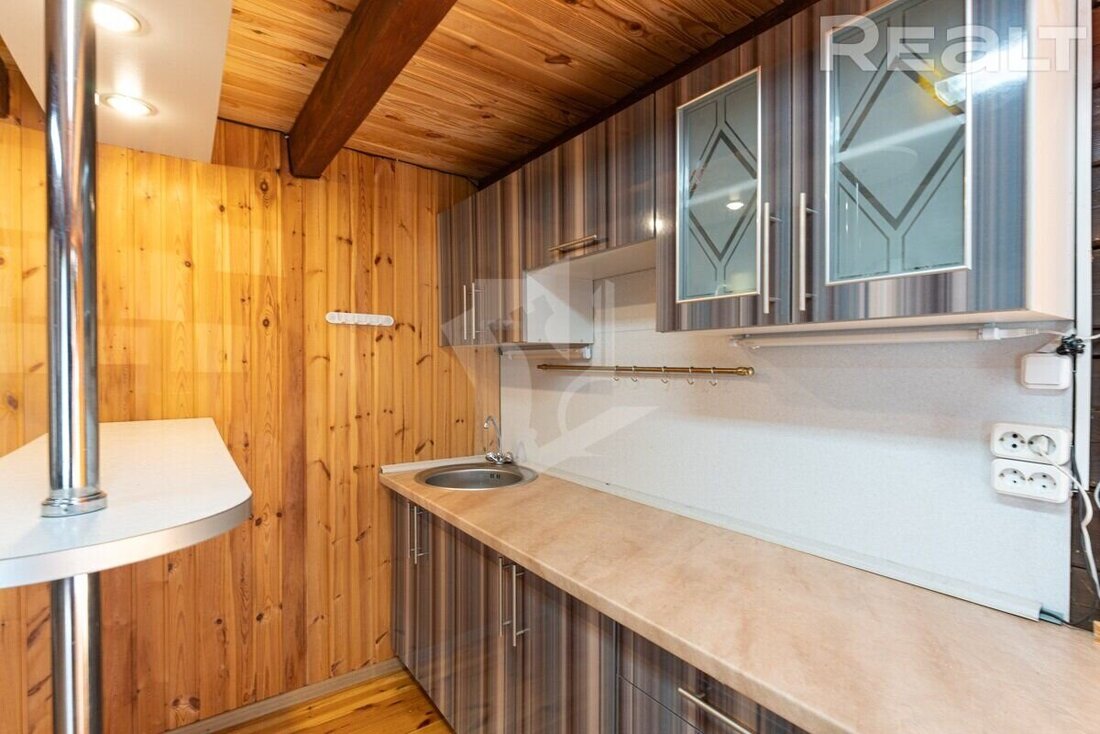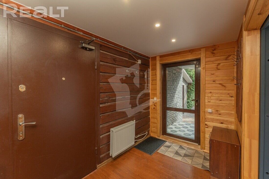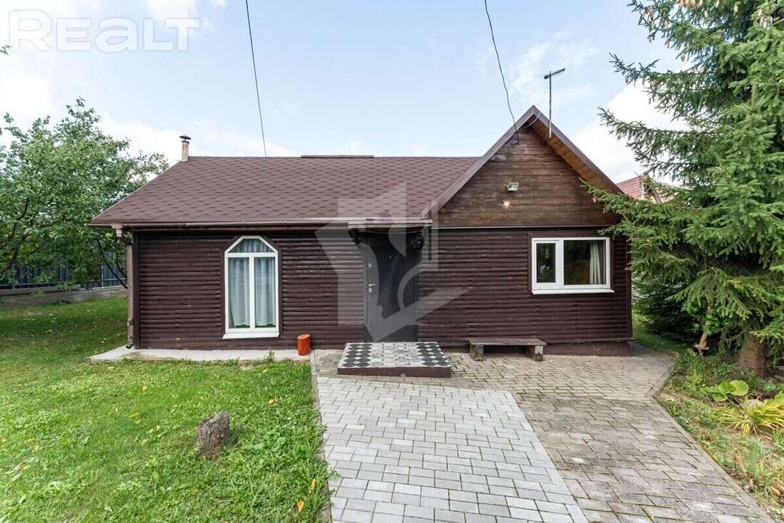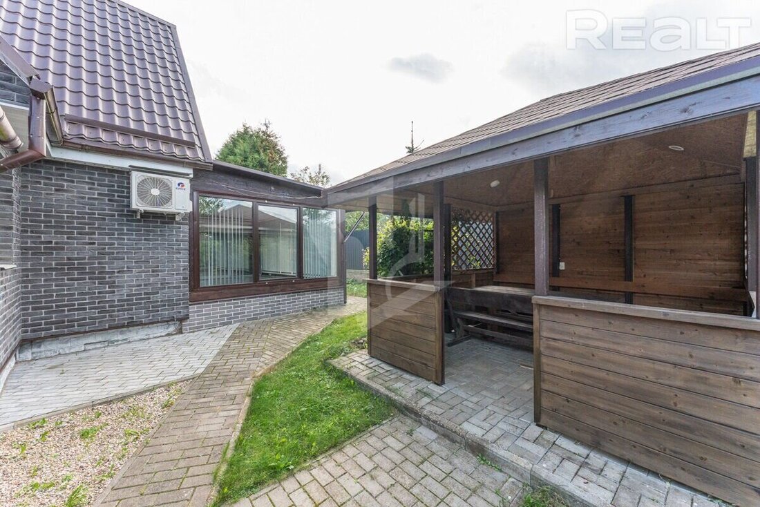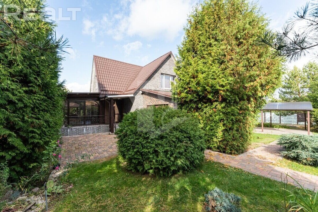 Рядом с Минском, в окрестностях озера Вяча, продается добротный дом. На него мы обратили внимание по нескольким причинам. Во-первых, выглядит неплохо — кирпичик под клинкер на фасаде, классическая форма крыши и пристройка с большой площадью остекления. Во-вторых, внутри интересный интерьер, свойственный деревянным домам. В-третьих, классная баня с комнатой отдыха, беседка и полностью благоустроенный большой участок, выходящий к лесу. Цена нам тоже понравилась.