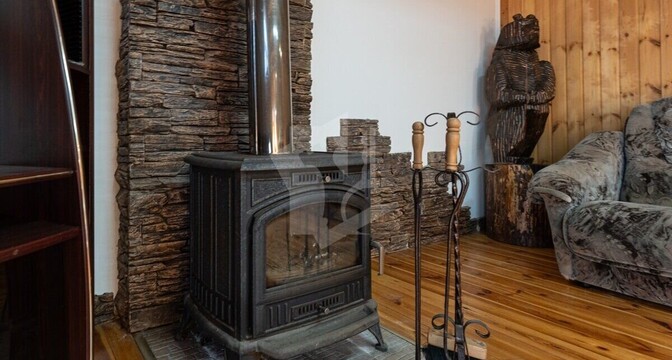 Общая площадь составляет 212 квадратов. На первом этаже расположены гостиная, кухня, топочная, санузел и, что редкость, спальня с большим камином.