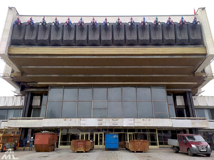 Внешний облик кинотеатра, который был построен в 1980 году по проекту В. Крамаренко, М. Виноградова и В. Щербины, практически не изменится. Современность и динамичность зданию придаст новый вентфасад из керамогранита, имитирующего цвет и рисунок природного мрамора. Широкоформатные плиты будут размером 3 на 1 метр. Витражное остекление заменят на более энергоэффективное, выполнят новую кровлю. На фасаде почистят и освежат медные щиты с оригинальной подсветкой, которые символизируют 15 республик СССР.
