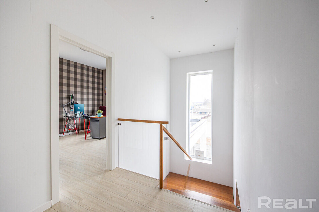 Дом расположен в элитной коттеджной застройке рядом с лесным массивом в Ратомке, всего в 10 минутах от Минска. Здесь развитая инфраструктура: детские сады, школа, магазины.