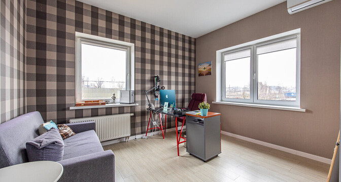 На втором — просторная спальня с гардеробной и выходом на лоджию, детская и гостевая комнаты, кабинет, санузел.