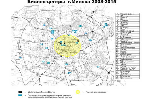 С 2004 года в нашей стране ежегодно строилось 3−4 новых бизнес-центра. На данный момент в г. Минске введены в эксплуатацию такие бизнес-центры как: «ХХI-век», «Комкон», «Expobel», «Анкор», «Виктория Плаза», «Саако» (1 очередь), в том числе по схеме долевого строительства с привлечением соинвесторов — «Александров Пассаж», «Капитал», «Европа», «Виктория Плаза», «Немига Сити 1», «Aквабел», IBC, бизнес-центр на Короля и др.; построены БЦ «Инфо» (1 очередь), бизнес-центр по ул. Одоевского, БЦ «Hi-tech», торгово-административный центр «Стелла». Следует отметить, что технические и качественные характеристики даже новых, современных бизнес-центров или административных зданий зачастую не соответствуют международным стандартам, являются морально устаревшими: негибкая планировка помещений (коридорная система), на этажах — общие санитарные помещения, большие площади общего пользования, уменьшающие полезную площадь помещений и т. п. Кроме того, имеет место существенное смещение сроков ввода в эксплуатацию строящихся бизнес-центров от запланированных (например, БЦ «Капитал», БЦ «Инфо», БЦ «Виктория Плаза», БЦ на Краснозвездной, 18, БЦ «Саако», БЦ «Порт» и др.), а также снижение классности здания от заявленной: БЦ «Капитал» — с класса, А в класс В1, БЦ на Короля, 51 — отсутствует четкое рыночное позиционирование.
