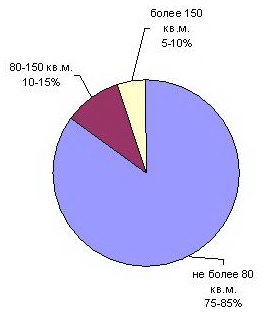 Спрос на офисные помещения более 150 кв. м невелик вследствие ограниченных финансовых возможностей финансирования всей покупки, принимая во внимание дорогие кредиты, негибкую систему кредитования, рост цен на офисы (в течение 2004−2005 г. г. цены на офисные помещения ежегодно росли на 20−30%).