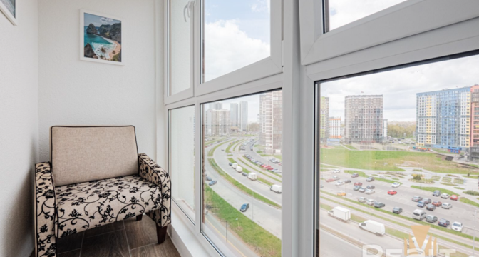 Дом на Савицкого, 12 сдали в эксплуатацию в прошлом году. Его высота — 15 этажей, на 9 продается евродвушка площадью 39,8 м².