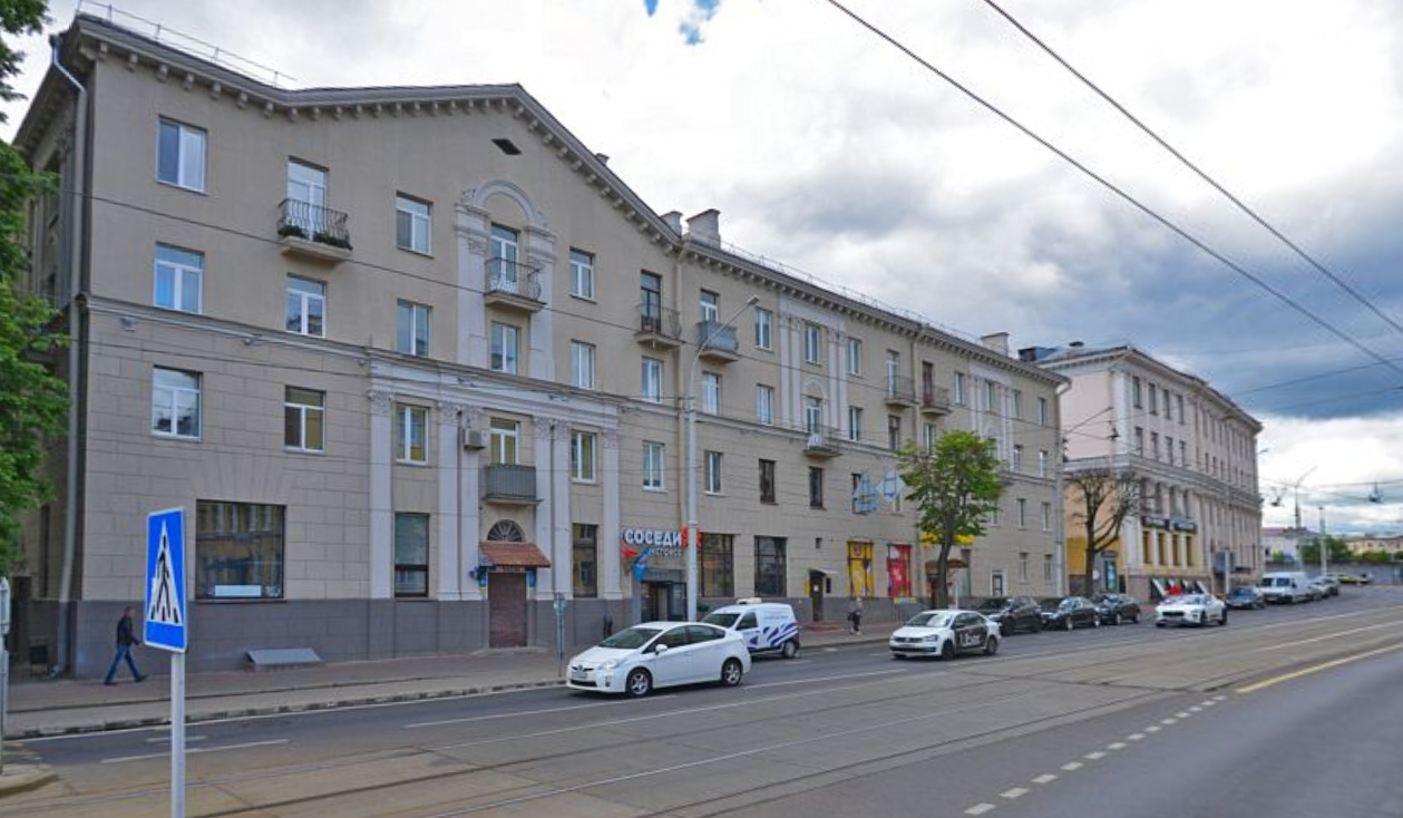 Квартира находится на четвертом этаже в четырехэтажном доме на Красной, 14. Это за проспектами Независимости и Машерова. Прямо в доме есть два небольших продуктовых магазина, ремонт техники и магазин подарков и сувениров. В соседнем доме — аптека. Рядом — 23-я гимназия и Национальный центр современных искусств. До станции метро «Площадь Якуба Коласа» — около 500 метров или минут 7 пешком.