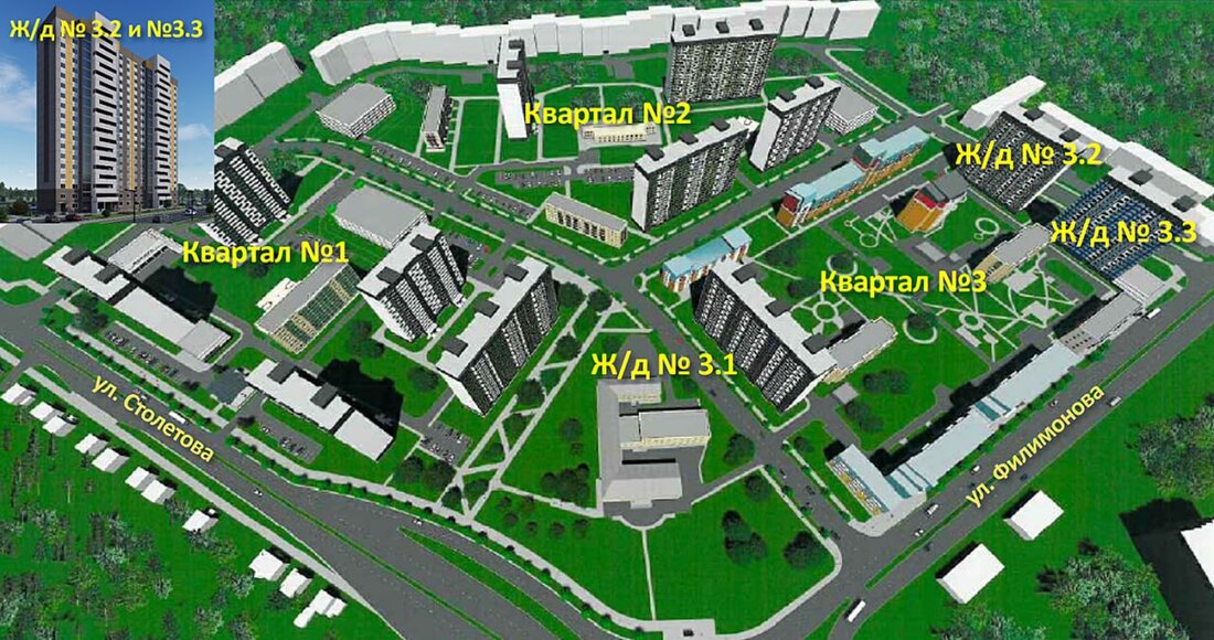 В настоящий момент в районе улиц Столетова, Авангардной и Запорожской возводят дом № 3.3 по генплану. Это будет двухподъездное здание на 19 этажей и 188 квартир. В доме запроектированы однокомнатные, двухкомнатные, трехкомнатные и четырехкомнатные квартиры.