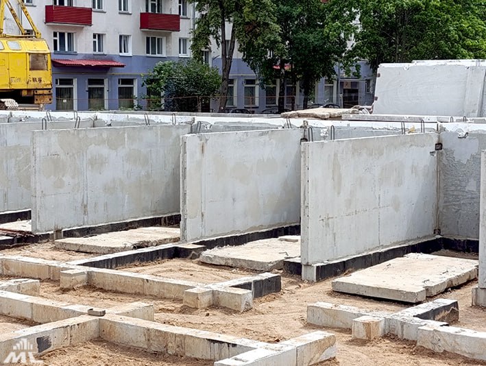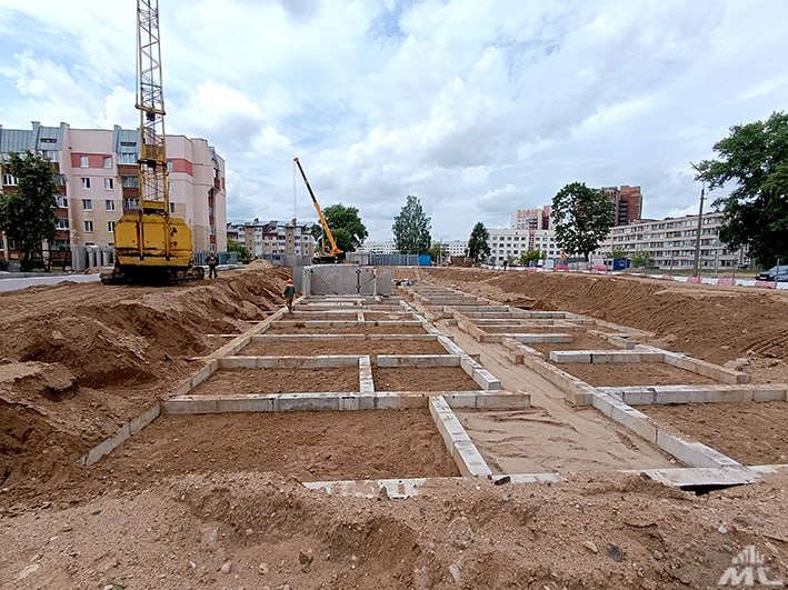 Сейчас строители генподрядного СУ-16 первого треста приступили к монтажу цокольного этажа. После завершения этих работ на объекте установят башенный кран, и начнется монтаж конструктива выше нулевой отметки — первого этажа. Параллельно ведется обратная засыпка фундамента грунтом. Заложен также фундамент будущей ПНС.