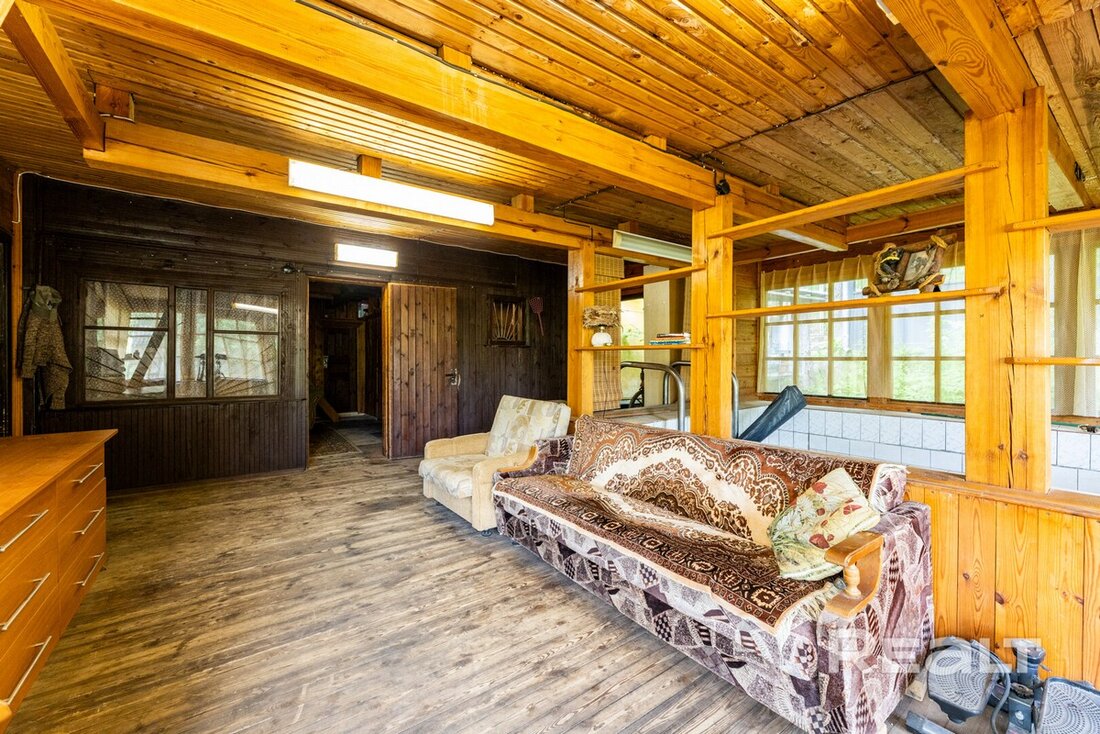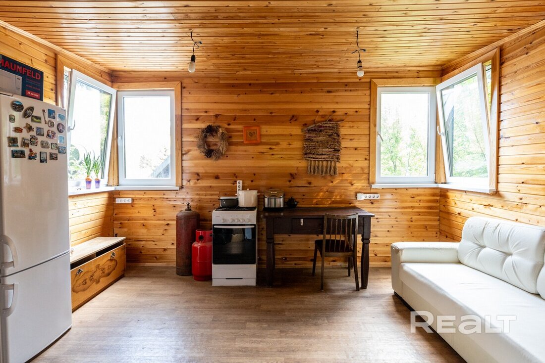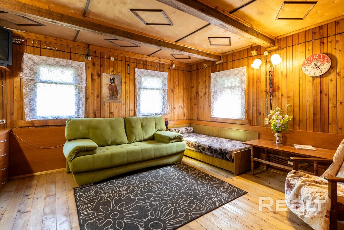 Если бездушные постройки из стекла и бетона — не то, чего бы вы хотели, то мы нашли для вас уютную дачу, оформленную в лучших традициях дачной эстетики прошлого. Деревянный дом, который сейчас продается, находится в получасе езды от Минска, рядом с лесом. Тут есть и баня, и бассейн, и печка, и колодец. А стоит дача дешевле однушки в столице.