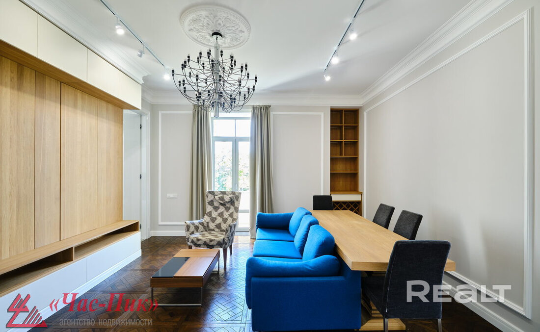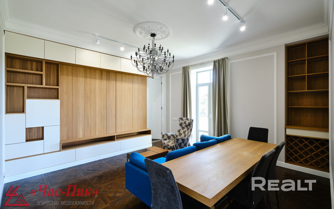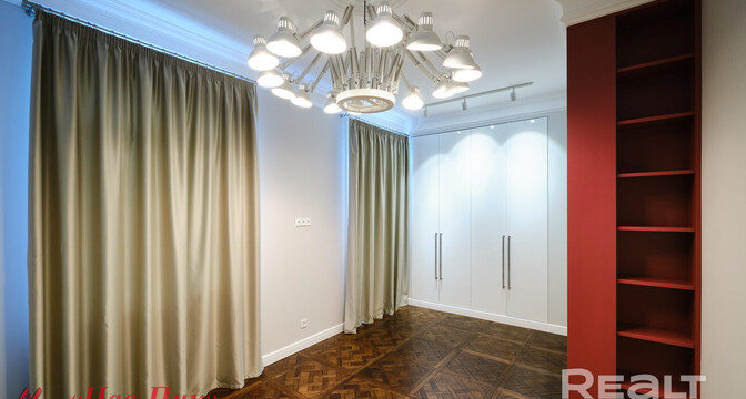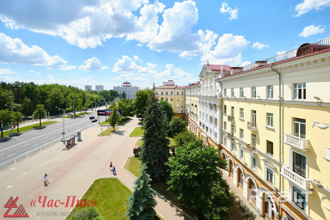 Генеральским домом в Минске называют две сталинки напротив парка Челюскинцев, которые примыкают друг к другу. Строить их начали еще до войны, а достроили после. Квартиры там получали непростые семьи, в том числе и высшие армейские чины — отсюда и название — «генеральский» дом. Сейчас в базе Realt появилась шикарная квартира в этом доме, но и цена у нее соответствующая.