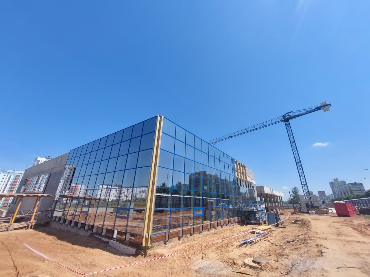 Комплекс с тремя бассейнами в Лошице планируют ввести в эксплуатацию к концу года. Фото, как выглядит новый ФОК на улице Лучины сейчас, публикует телеграм-канал «Минскстроя».