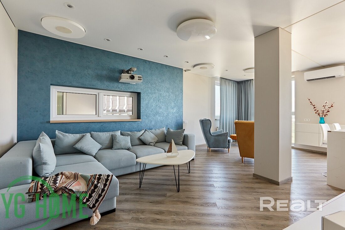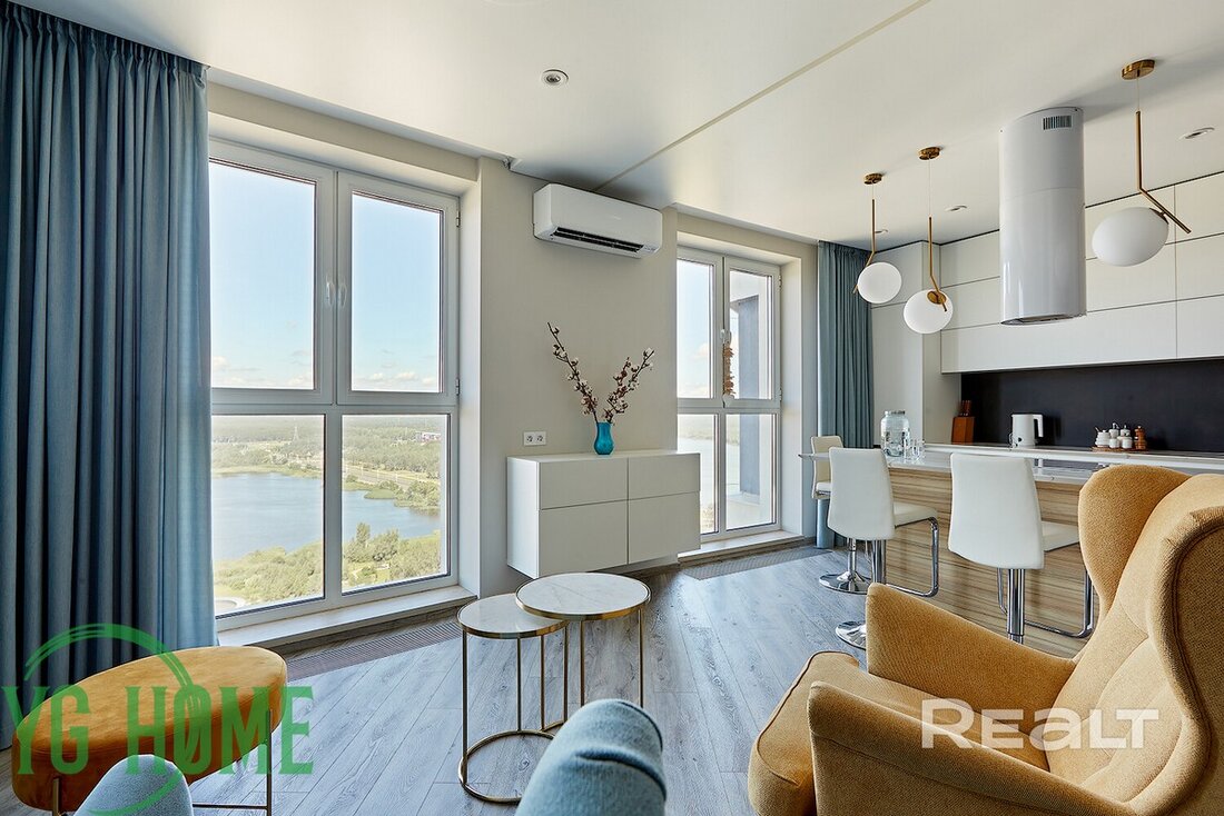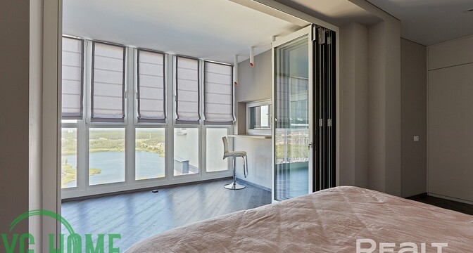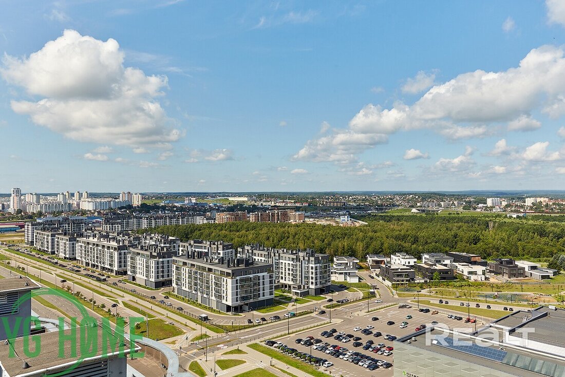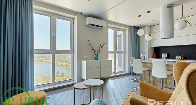 Ну, а самое дорогое предложение — это эксклюзивная трехкомнатная квартира на 22-м этаже. Из окон этой квартиры открывается вид на водохранилище Дрозды и заказник Лебяжий. Площадь жилья составляет 104 квадратных метра. Квартира полностью укомплектована мебелью и техникой премиум класса. Стоимость — 334 тысячи долларов (3220 — за метр).