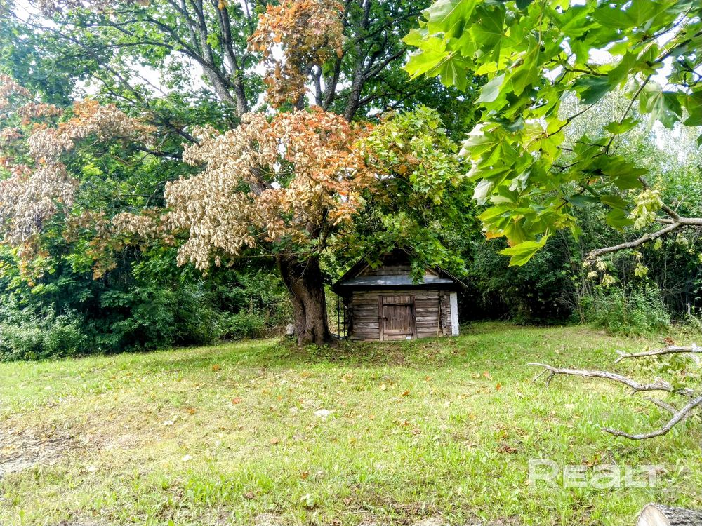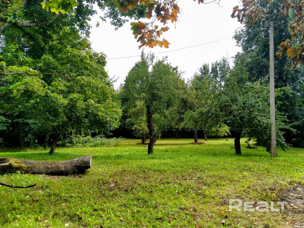 Участок 25 соток, ровный, прямоугольной формы. На нем растет сад, имется крепкий сарай. При желании площадь участка можно увеличить.
