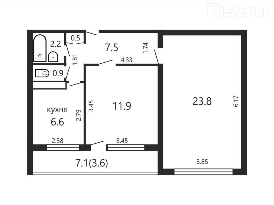 Санузел — раздельный. Есть и длинная застекленная лоджия с выходом из кухни.