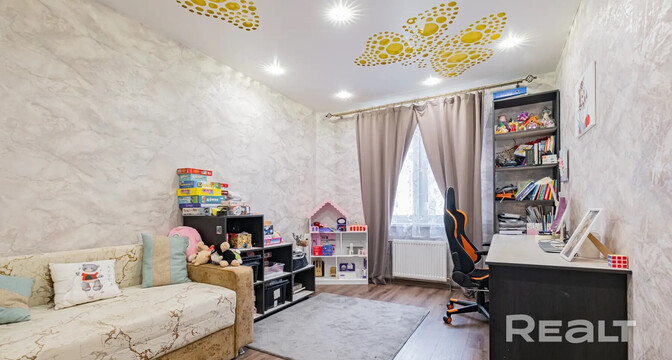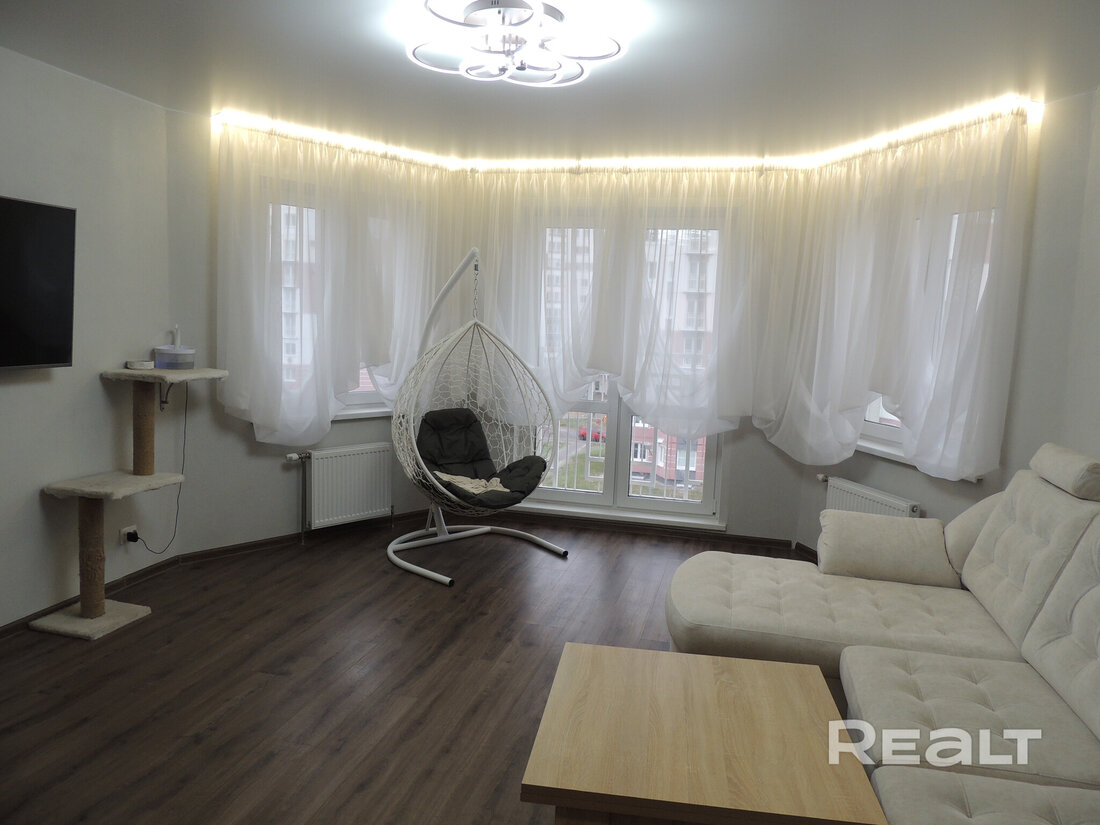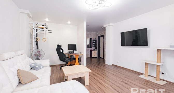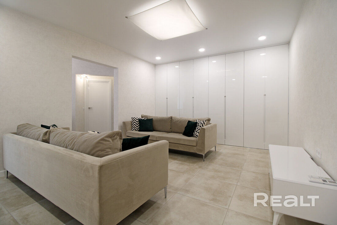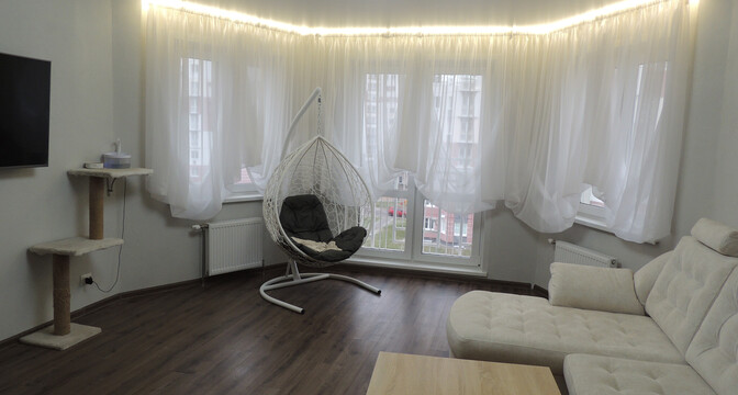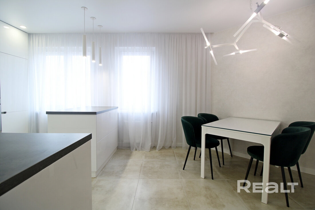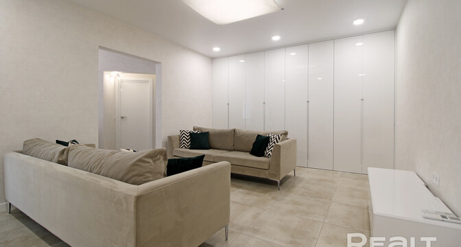 Самый дорогой вариант — трехкомнатная квартира на восьмом этаже дома 2017 года постройки. Общая площадь этой трешки насчитывает 93 квадратных метра. В квартире необычная планировка: три раздельные комнаты на обе стороны дома, просторная прихожая (здесь сделана гостиная), две большие лоджии, большая ванная комната. В квартире сделан дорогостоящий и качественный ремонт: кондиционер, натяжные потолки, пол на кухне с подогревом, ламинат и плитка. В квартире остается вся мебель и бытовая техника (посудомоечная машина, варочная панель, стиральная машина, холодильник, СВЧ, духовой шкаф, кондиционер). Стоимость квартиры — 144,9 тысячи долларов (1550 долларов — за метр).