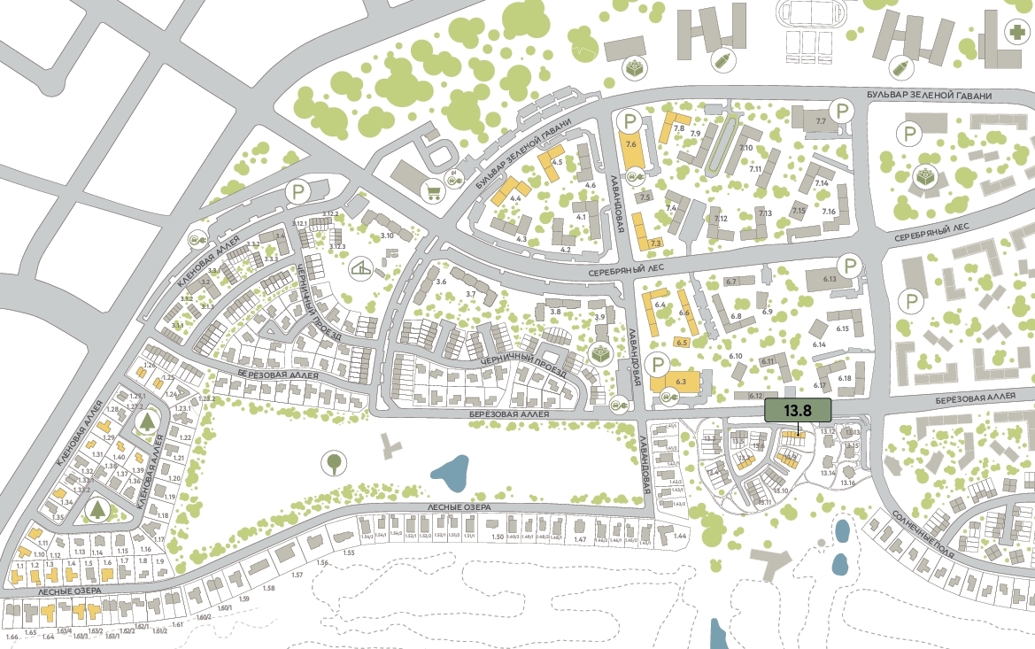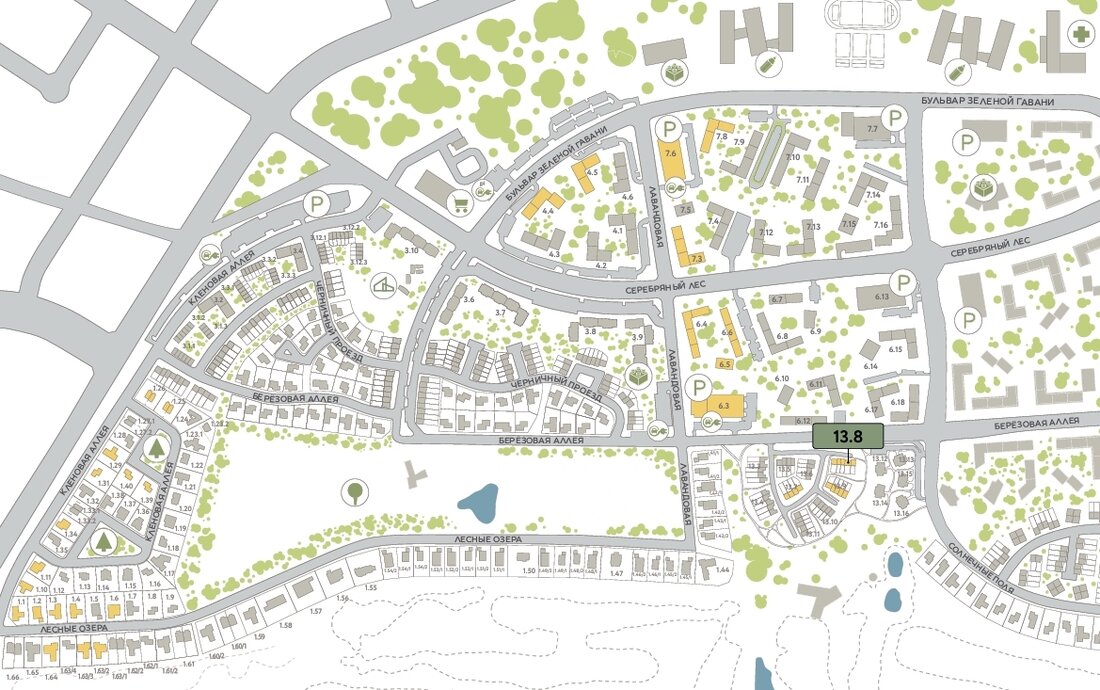 Квартал «Долина холмов» будет представлен низкоэтажной застройкой — лайнхаусами и таунхаусами. Тут предусмотрены освещенные прогулочные маршруты и небольшая детская площадка. Приватность территории обеспечат шлагбаумы, которыми будут отделены внутренние проезды. С южной стороны квартал примыкает к гольф-полям.