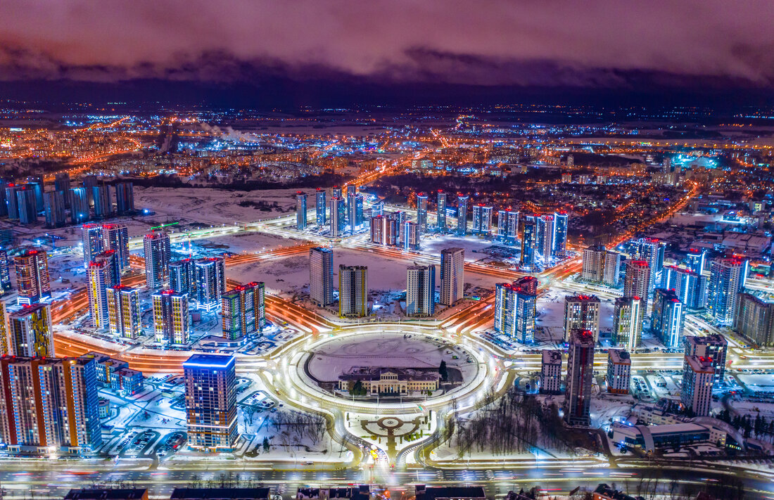 Идёт остекление фасадов зданий Международного финансового коммерческого центра. Его открытие состоится в 2027 году, но уже сегодня очевидно, что открытие МФКЦ станет новым этапом развития экономики страны.