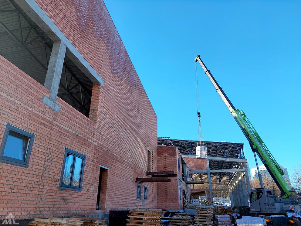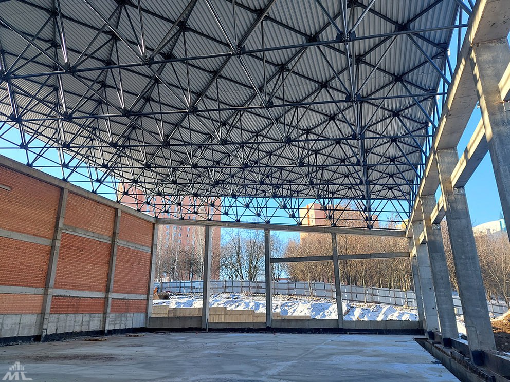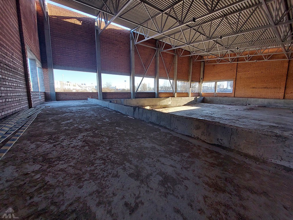 Большая часть работы уже позади: кровля смонтирована, здание перекрыто, ведется устройство финишных слоев. Работа идет полным ходом, поэтому строители уверены, что смогут сдать здание уже в 2025.