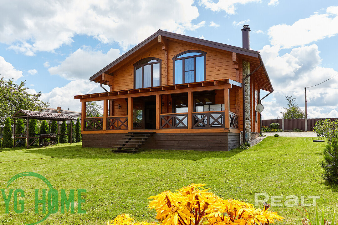 Бревенчатый дом в два этажа был построен в деревне Волча в Витебской области — чуть больше 100 км от Минска. Его возводили в 2020 году. Крышу покрыли металлочерепицей. Общая площадь дома составляет 173 квадрата.