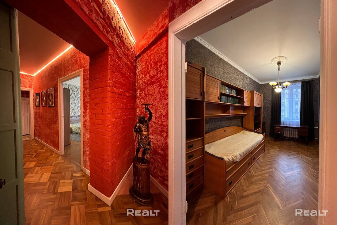 Квартира расположена на третьем этаже. В конце прошлого года здесь сделали ремонт — восстановили стены, потолки и оригинальную лепнину. На стенах в некоторых комнатах — номерной кирпич, на полах — дубовый паркет. Проводка в квартире медная, а внешняя разводка керамическая.