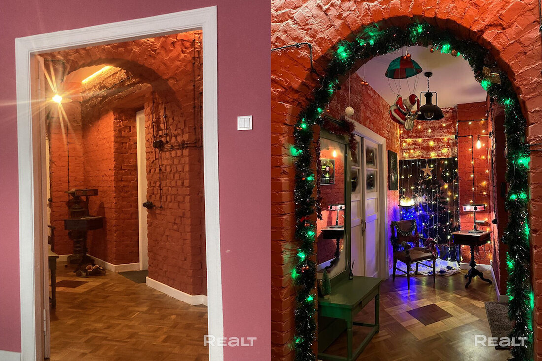 Фотографий квартиры в объявлении не очень много, но по ним ясно, что ремонт в квартире нестандартный, из-за кирпичной кладки интерьер в некоторых комнатах напоминает кафе.