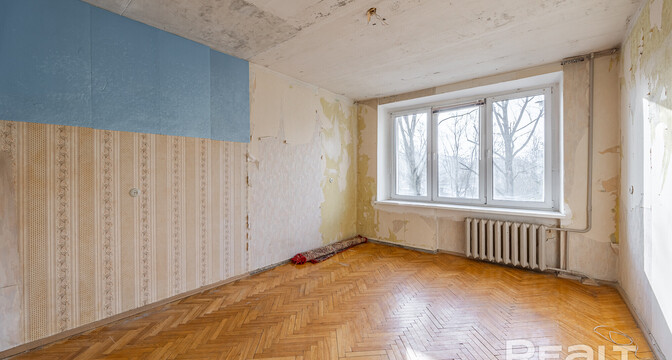 Эта квартира расположена на третьем этаже. Везде установлены пластиковые окна. А стены, пишет продавец, подготовлены под поклейку обоев.