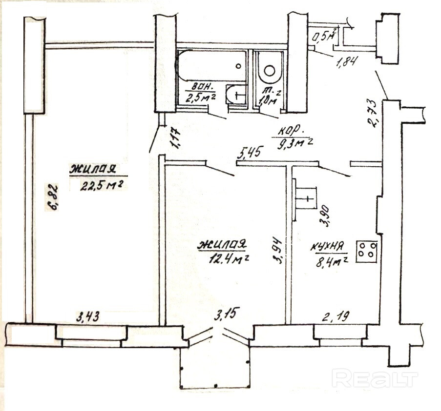 Общая площадь квартиры — 57 квадратов, жилая — 35. В ней две полноценные жилые комнаты и кухня метражом 8 квадратов. Потолки — выше трех метров. Весь ремонт выполнен в едином стиле. В квартире после ремонта никто не жил.