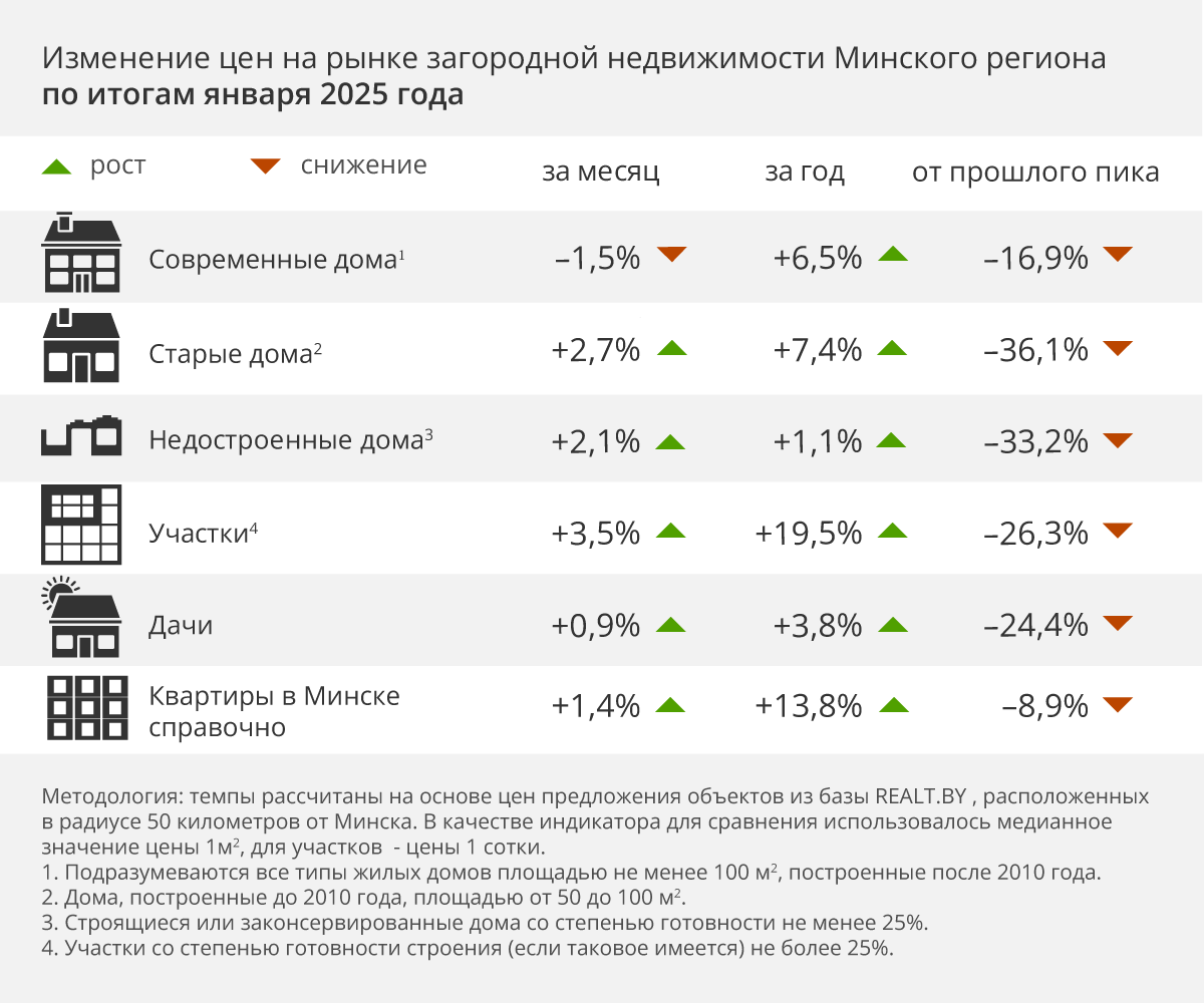 За год существеннее всего подорожали старые дома (+7,4%) и участки (+19,5%). Современные дома и дачи стали дороже на 6,5% и 3,8% соответственно.
