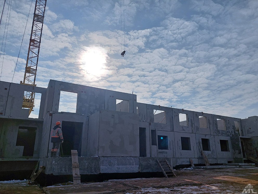 Фундамент заливали на свайном поле из 350 песчаных свай. Дом будет двухсекционным. Ранее говорили, что там будет 152 квартиры, сейчас «Минскстрой» пишет про 126. Половина жилья предназначена для нуждающихся, а остальное — арендные квартиры.