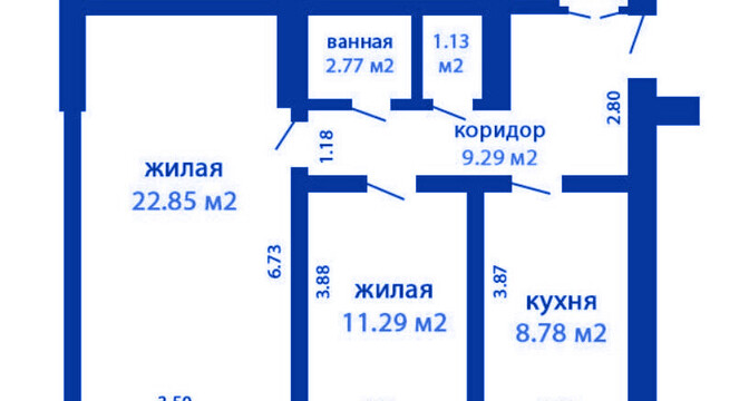 В квартире, которую выставили на продажу, три комнаты. Общая площадь — 80 квадратов, почти половина из них — жилые. Площадь кухни — 10 метров. От гостиной кухню отделяет стена-перегородка.