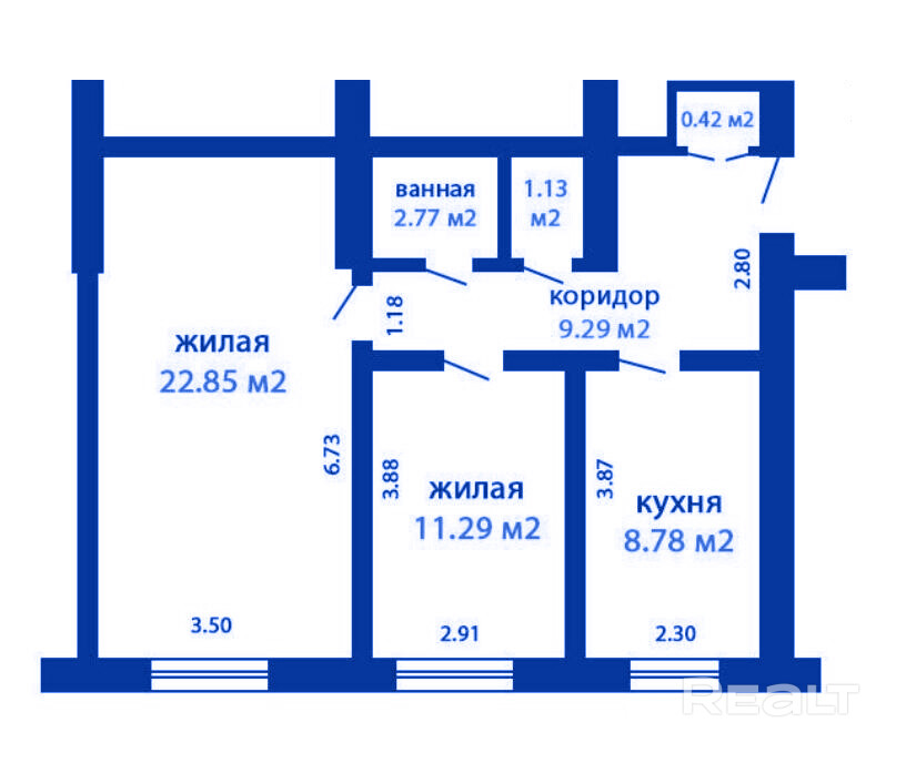 Квартира стоит 195 тысяч долларов (метр — 3 451 доллар). При покупке в лизинг на первый взнос нужно от 58 тысяч долларов. В объявлении можно просчитать различные условия.