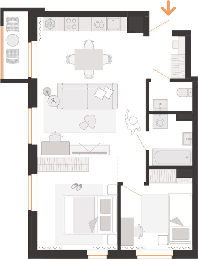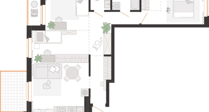 Квартиры передадут без отделки. Но в третьей и четвертой секциях в перспективе будут доступны варианты с готовой отделкой «Копенгаген» и White Box.