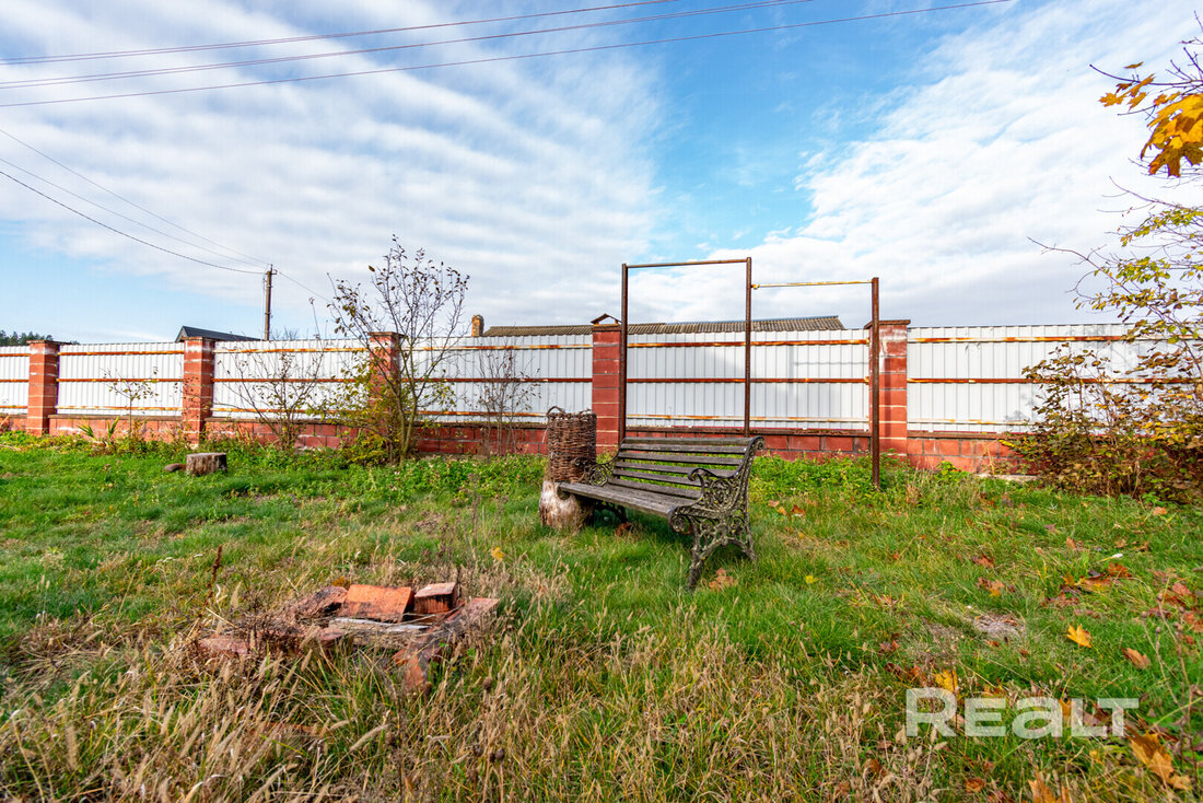 Дом стоит на участке площадью в 25 соток. Он огорожен забором из бетона и металлопрофиля. На территории есть утепленная пристройка под гараж или мастерскую, бревенчатая баня, 2 погреба, открытый навес и дровник.