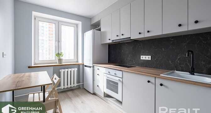 На улице Аэродромной на продажу выставили однокомнатную квартиру с аккуратным свежим ремонтом в минималистичном стиле. Визуально эта квартира напоминает хорошие варианты в Минск-Мире, но находится в кирпичном доме начала 80-х. А вид на Минск-Мир открывается здесь из окна. Посмотрим этот вариант.