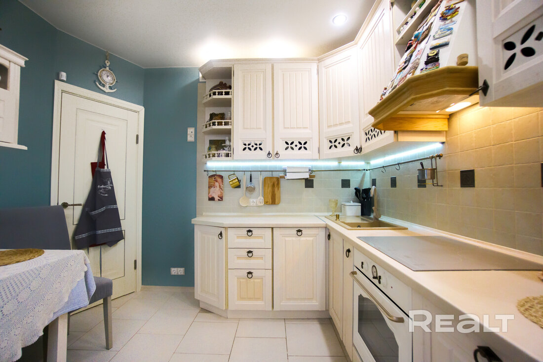 Общая площадь квартиры — 17 квадратов, жилая — 17. Площадь кухни — 9 метров. Ремонт в квартире выполнен в классическом стиле. Кухня — в стиле прованс.
