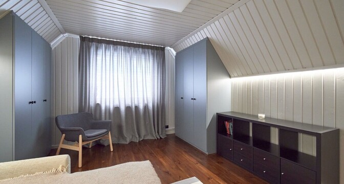 На первом этаже находятся гостиная и кухня с выходом на террасу, одна жилая комната, кладовая, прихожая, санузел, топочная.