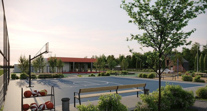 В отличие от современных жилых комплексов на собственном участке разрешена полная свобода действий: можно организовать зону барбекю, сад, личный огород либо небольшую спортивную площадку с баскетбольным кольцом. При этом сохраняется приватность и личное пространство.