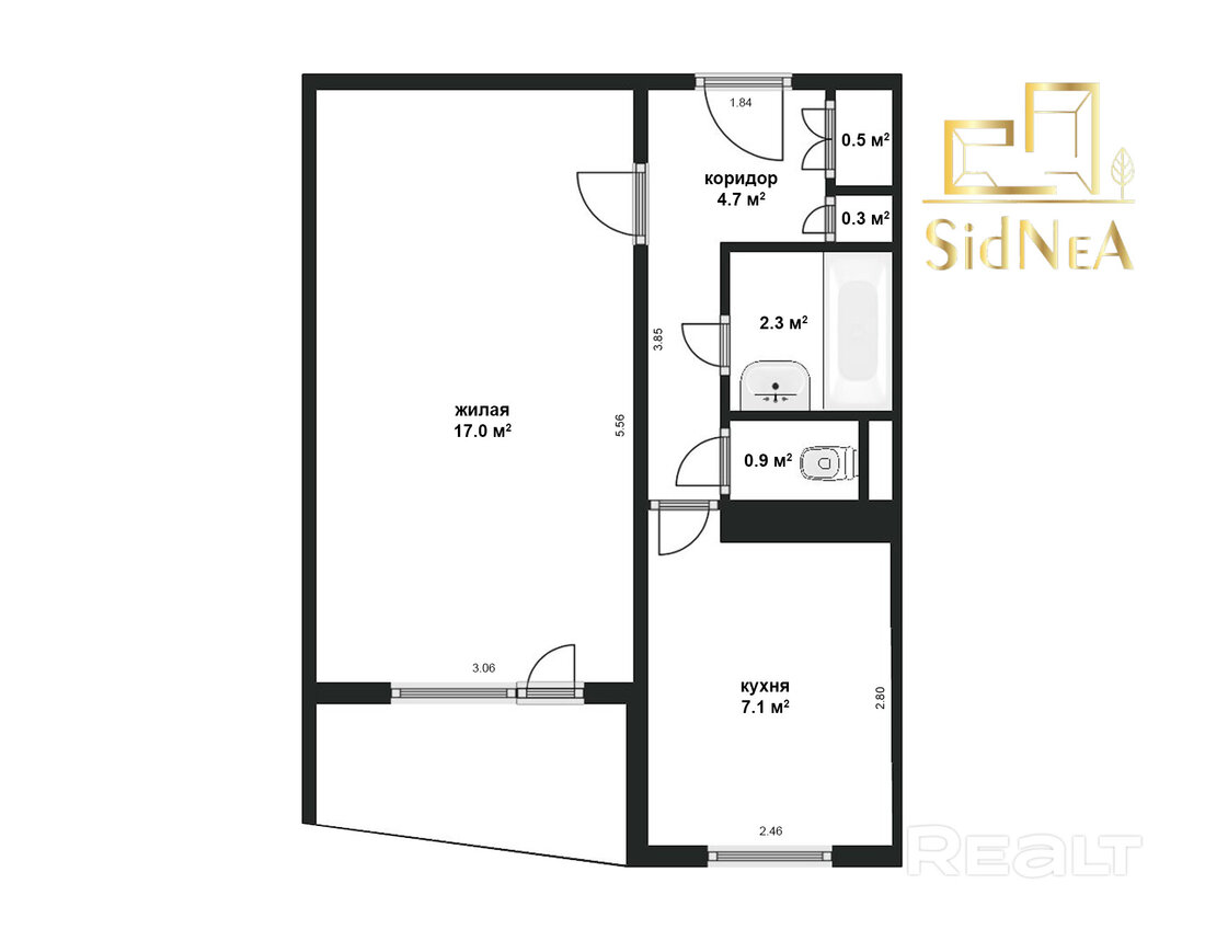Стоимость квадратного метра составляет 1 376 долларов. Вся квартира обойдется в 47 900 долларов.