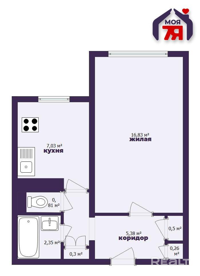 Квартира на Широкой, 20 также располагается в девятиэтажке, но уже на последнем этаже. Дом построили в 1976 году. Площадь однушки — 33,4 м², кухня занимает 7,4 квадратного метра.