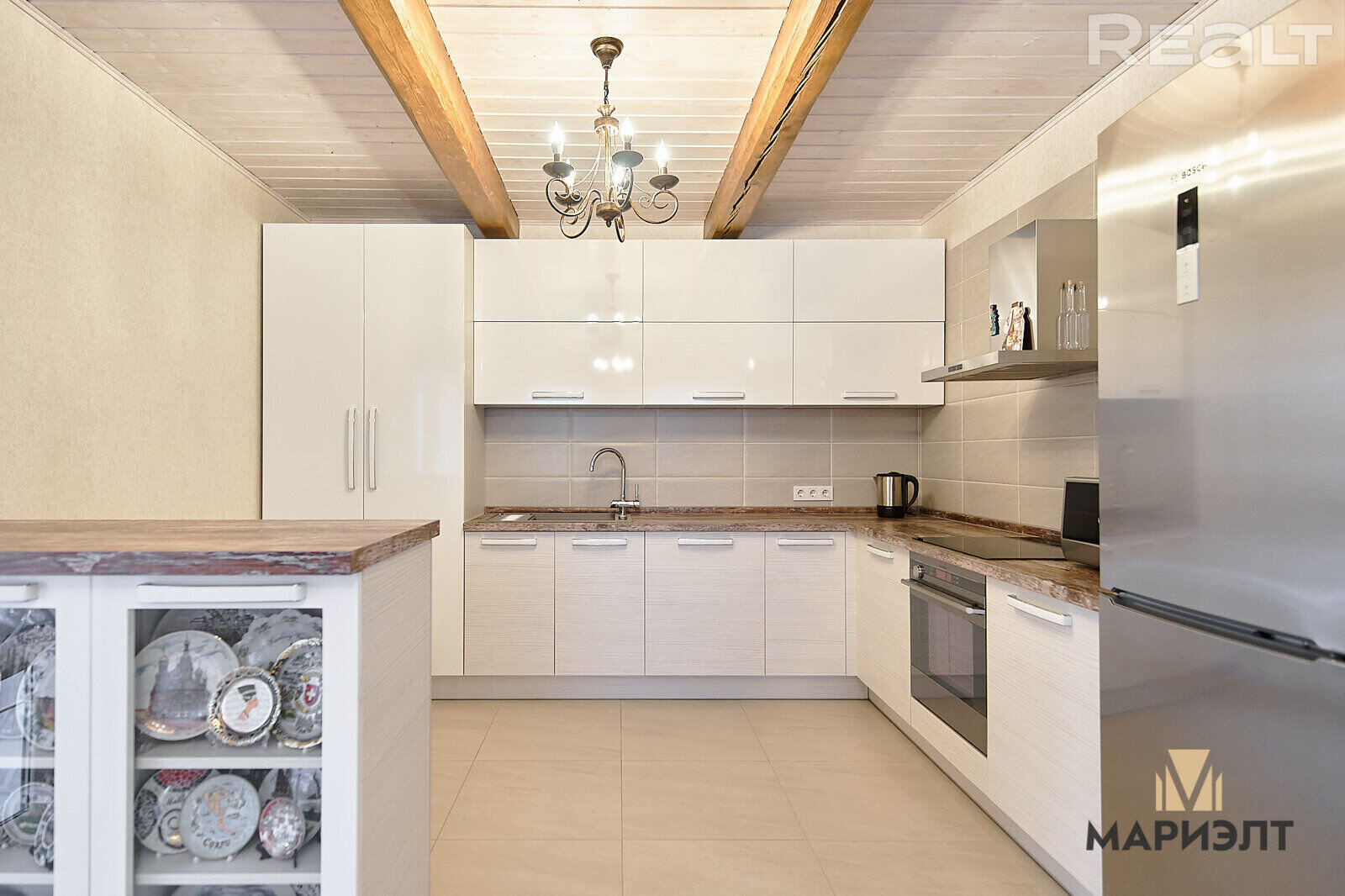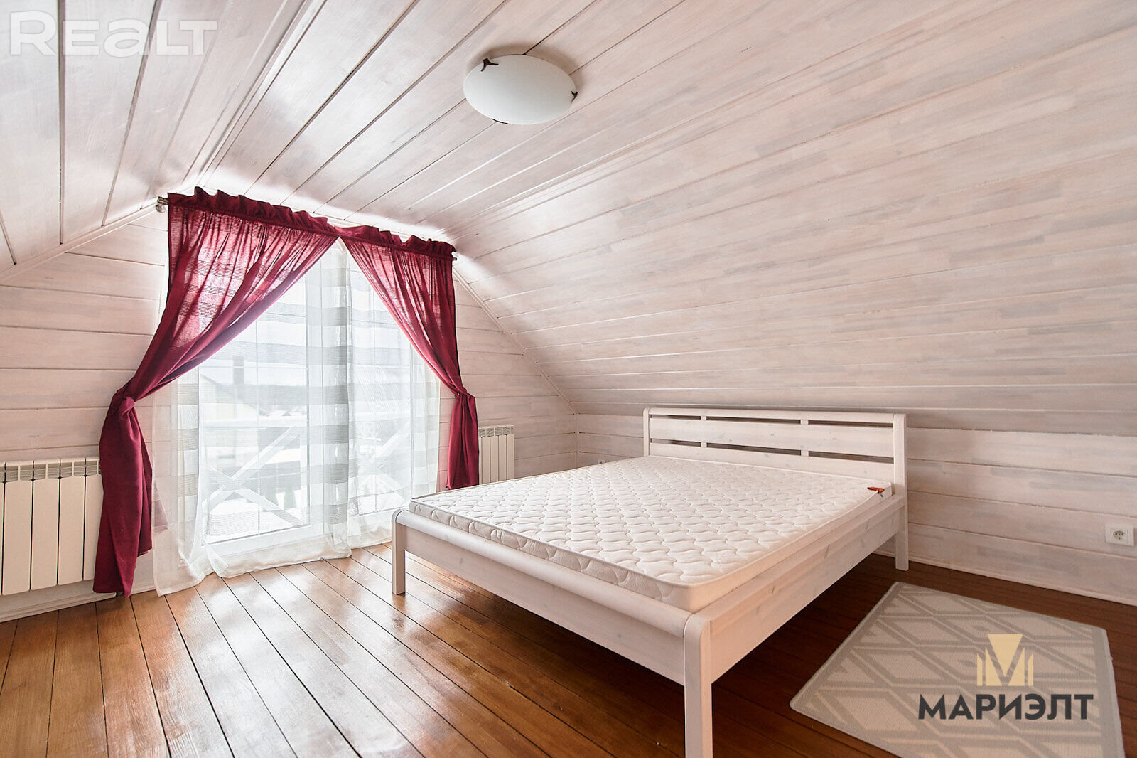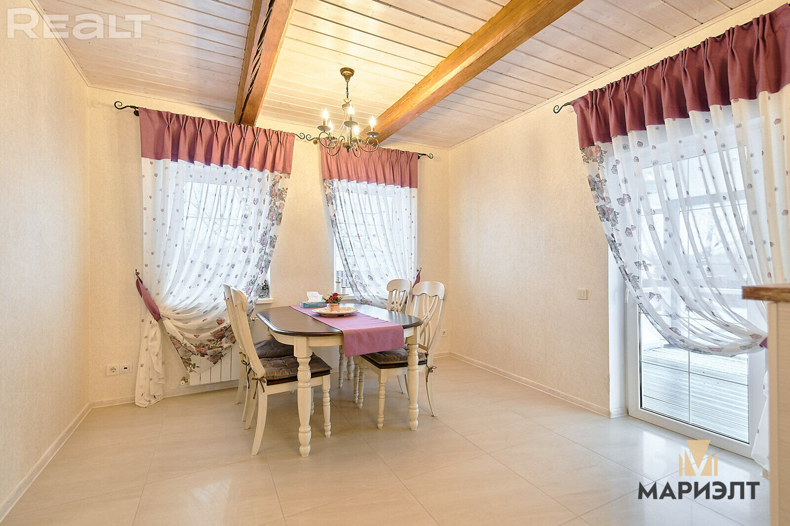 Этот коттедж находится в Ракове — старинном городке с богатой историей. Здесь развитая инфраструктура: есть школа, больница, магазины, автовокзал, частный музей, кафе. Сюда ходят маршрутки, рядом находится удобный выезд на МКАД-2. Природное окружение прекрасно: лес, озеро, река Ислочь — все рядом.